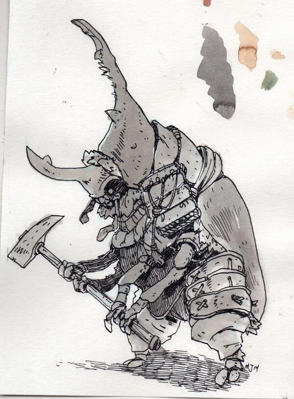 With humanoid forms and the features of mammals, the Maom take on the classical visage of Demons and Devils. Horns, hooves, tails, some even with bat-like wings. Their flesh looks as though it was flayed and their blood burns so hot steam occasionally comes off their body.